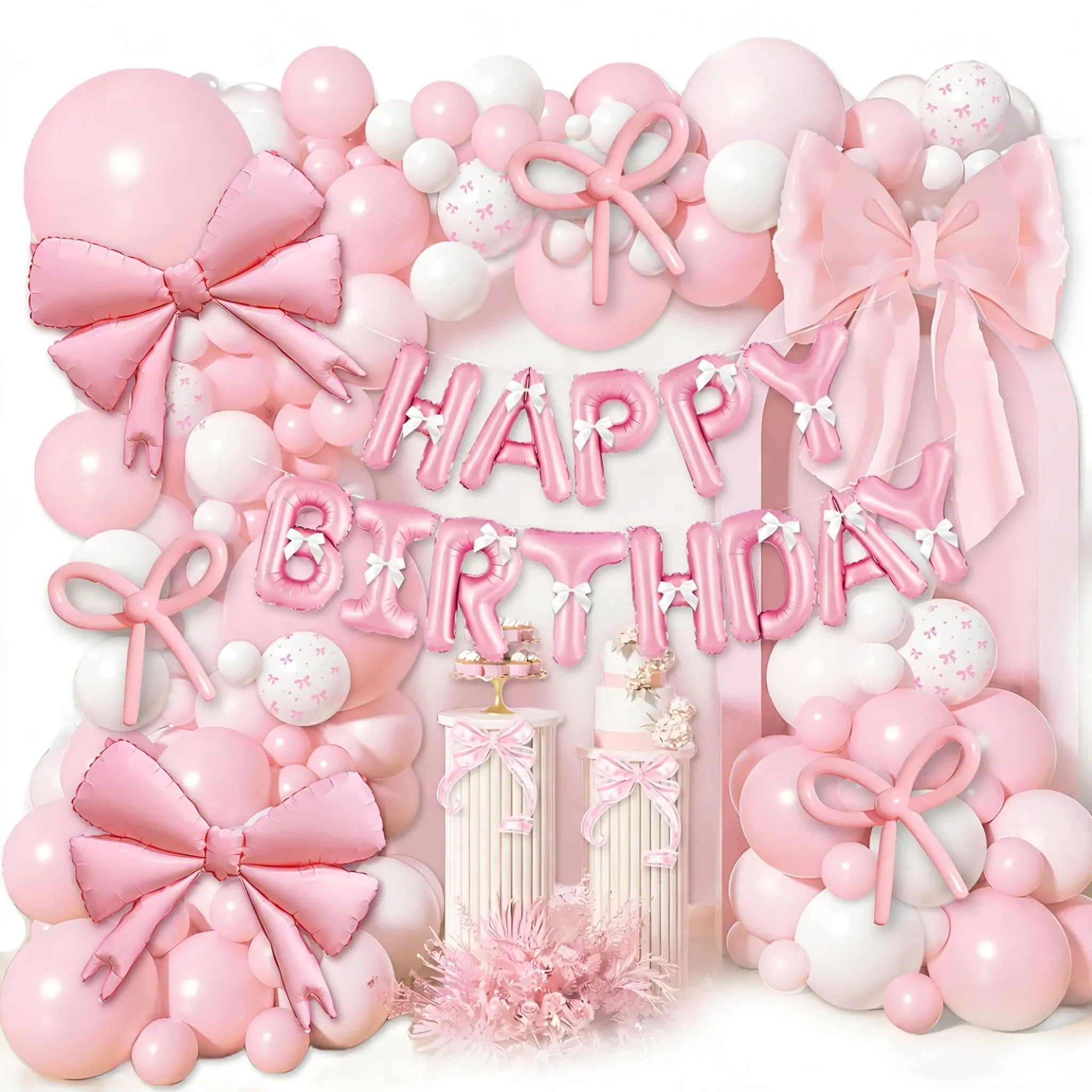 Set ini termasuk belon merah jambu bayi matte dalam 5 inci, 10 inci, 12 inci dan 18 inci, warna putih matte dalam 5 inci, 10 inci, belon busur merah jambu foil, belon panjang 260 panjang bayi merah jambu matte, busur reben, titik gam dan jalur hiasan belon.