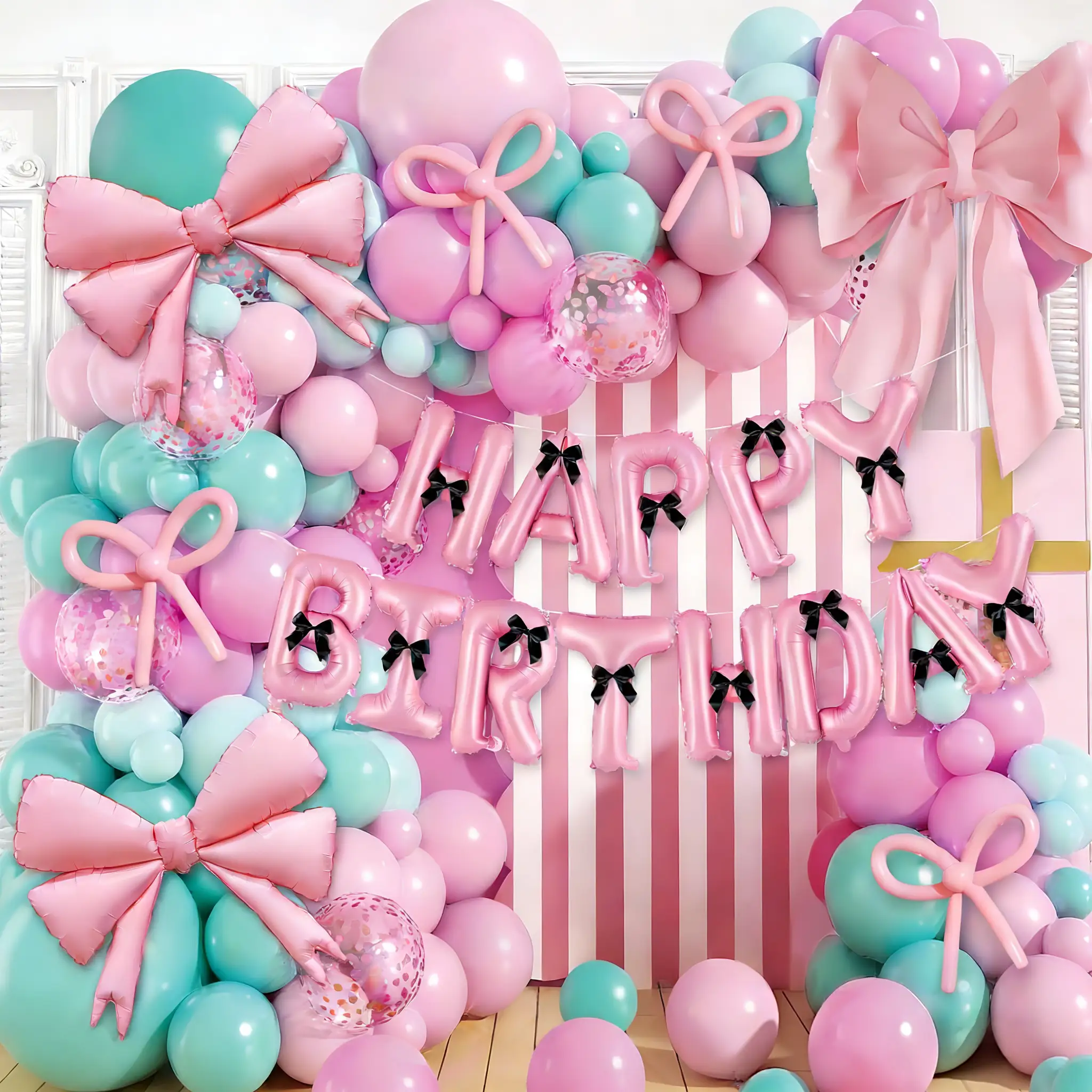Set ini termasuk macaroon pink, macaroon tiffany blue, macaroon rose red, matte skin pink dan matte tiffany blue warna. Ia mempunyai belon 5 inci, 10 inci, 12 inci dan 18 inci. Titik gam dan jalur belon boleh membantu pelanggan akhir anda dengan mudah untuk memasang set ini. Belon busur foil, reben hitam dan belon panjang 260 adalah bahagian mata untuk set ini.