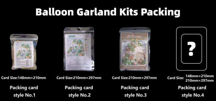 Untuk pembungkusan kit belon, jika hanya menyesuaikan kad pembungkusan, moq adalah 50set, jika adat kadbod luar moq adalah 500pcs.