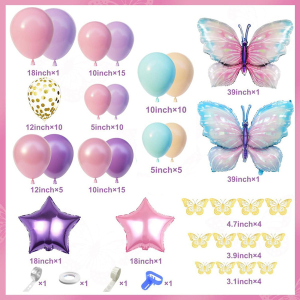 Gaya rama -rama telah sangat popular selama bertahun -tahun. Ia mewakili percintaan dan kebebasan. Kedua -dua orang dewasa dan kanak -kanak akan tertarik dengan gaya rama -rama. Ramai di antara mereka berharap dapat menggunakan kit kit Butterfly Balloon Garland ini untuk pesta ulang tahun mereka.