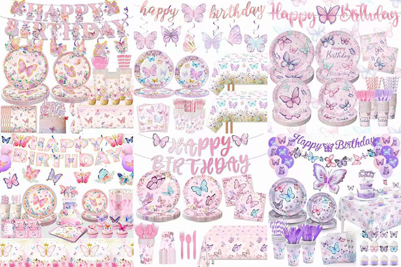Penyelesaian tersuai adalah fleksibel. Bilangan set pinggan mangkuk boleh berubah mengikut saiz parti. Gaya corak juga boleh berubah. Ia boleh menunjukkan tema yang berbeza atau rupa kartun yang comel. Teks boleh ditambah, seperti nama atau tanda parti. Setiap set pinggan mangkuk rama-rama kelihatan istimewa dan menyimpan kenangan untuk parti itu.