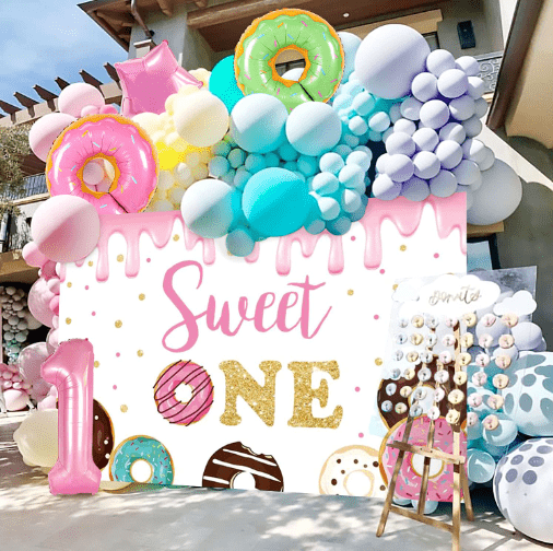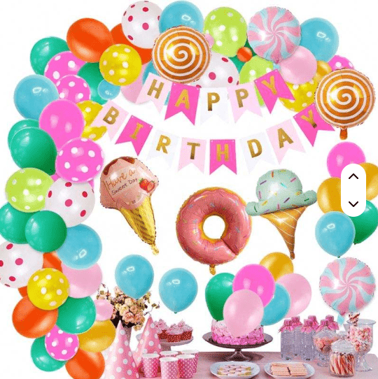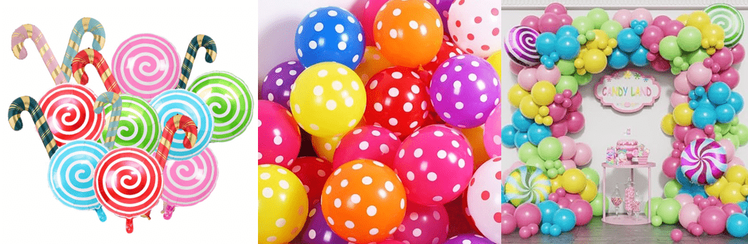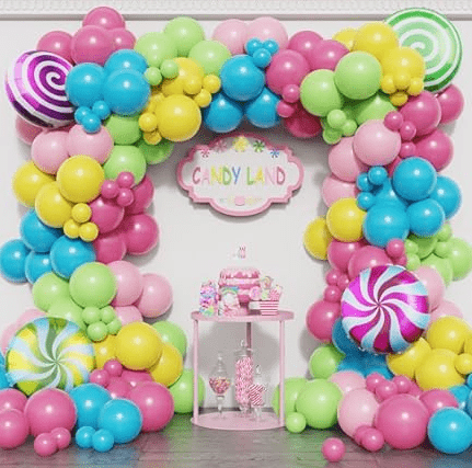 Kit garland belon tema gula-gula dengan warna gula-gula impian manis dan bentuk lolipop comel sebagai elemen reka bentuk teras, gaya keseluruhannya meriah dan manis.