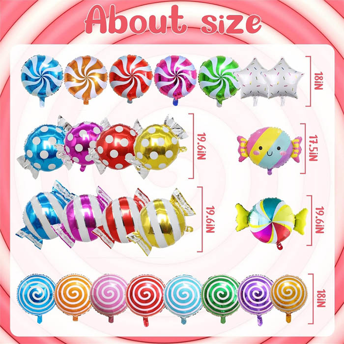 Balun kerajang siri Candy kini boleh didapati dalam pelbagai warna dan gaya, mewujudkan hiasan parti bertema gula -gula baru untuk orang dewasa, kanak -kanak, kanak -kanak lelaki, perempuan dan orang -orang dari semua peringkat umur. Balun bertema gula -gula Krismas yang cerah dan berwarna -warni, Lollipop bertemakan Lollipop Parti Foil Balloon Suit adalah tambahan yang comel untuk hiasan parti bertema hari jadi anda. Balloon Foil Candy sempurna dengan hiasan parti gula -gula lain, membuat hadiah yang indah, latar belakang dan alat paparan foto untuk rakan -rakan yang suka lollipop.