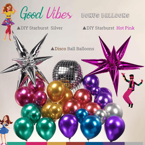 Pelbagai saiz dan warna belon telah mencipta kesan lapisan yang sangat kompleks untuk kit ini, yang boleh menarik banyak perhatian untuk acara anda. Ia sangat sesuai untuk parti disko, majlis muzik, majlis hari jadi dan sebagainya. Juga apabila budaya muzik K-pop semakin popular di dunia, anda boleh membuatKit gerbang belon disko K-popdengan menambahkan beberapa hiasan gaya K-pop, seperti tirai latar atau belon foil. Atau menambah hiasan hari jadi untuk membuat kit hiasan hari jadi belon disko.