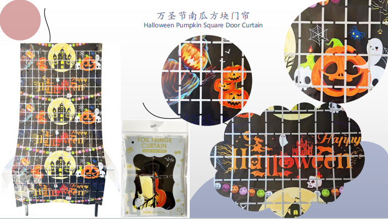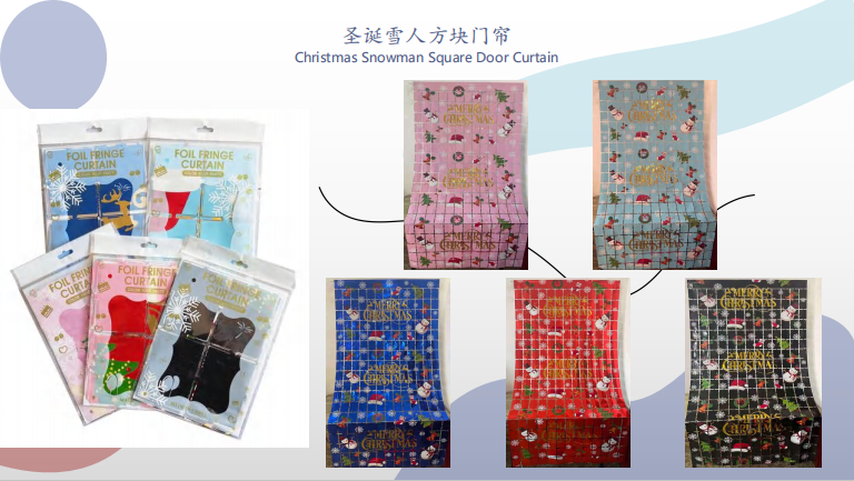 Seperti tirai foil hijau dan merah bertemakan Krismas, tirai foil hitam dan oren bertemakan Halloween, dan tirai kerajang dengan labu, kelawar, labah-labah dan bentuk lain, yang boleh digunakan untuk hiasan percutian di rumah, pusat membeli-belah, bar dan tempat lain.