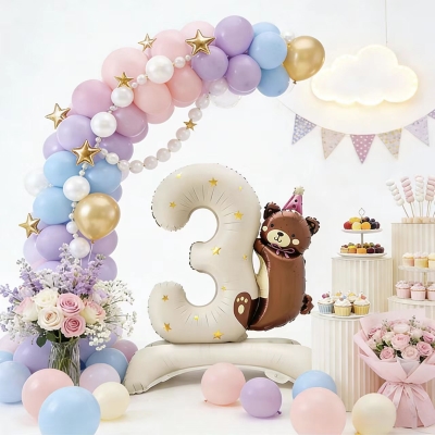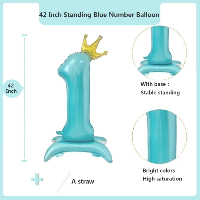 Thekerajang belon nombor berdirihiasan mempunyai asas kembung khas. Mereka berdiri teguh. Tiada sokongan tambahan diperlukan. Peletakan adalah fleksibel dan percuma. Mereka datang dalam pelbagai warna. Warna termasuk biru, merah jambu dan perak. Gaya nombor sudah lengkap. Ia meliputi digit dari 0 hingga 9. Ia sesuai dengan tema yang berbeza dengan baik. Tema termasuk umur hari lahir dan sambutan ulang tahun.