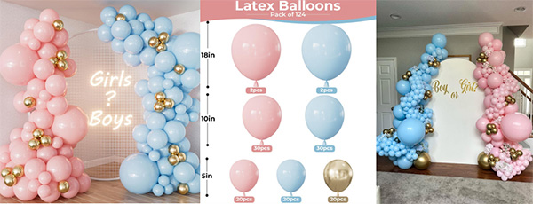 Set Gerbang Belon Dedah Jantina Belon biru merah jambu ini sesuai untuk kedua-dua perayaan besar dan perhimpunan hangat. Ia sesuai untuk menghiasi kawasan foto, meja pencuci mulut, pintu masuk atau Ruang luar, serta-merta meningkatkan suasana dan mudah memadankan pelbagai tema parti, daripada elegan hingga kasual.