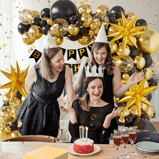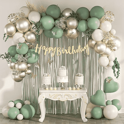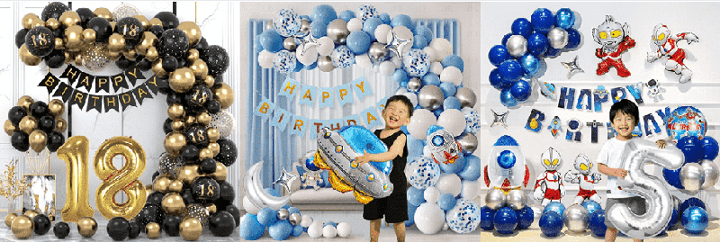 Gaya Asas adalah belon lateks selamat ulang tahun dalam warna yang sama atau pelengkap, denganSelamat hari lahir surat belon kerajangatauBalun Foil Nombor. Gaya Klasik Mempunyai Macaroon Powder Gel Balloon Pink Happy Birthday Foil Balloon, Black Latex Balloon Gold Number Foil Balloon. Belon lateks boleh diikat ke dalam rantai belon dan digantung di dinding atau siling, dengan belon kerajang sebagai pusat visual dan sedikit perhiasan reben untuk cepat mewujudkan suasana parti yang mudah dan bertekstur.