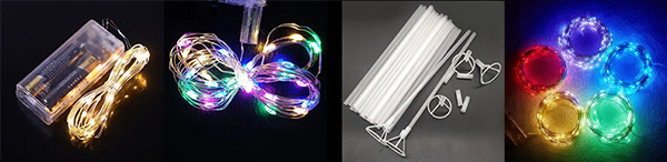 Jalur cahaya LED, tiub plastik, cawan belon, bulu |