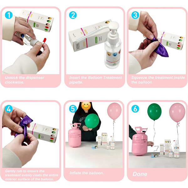 3. Gunakan formula yang dinaik taraf untuk memastikan masa membentuk filem gam di dalam belon yang lebih pendek dengan berkesan. Ia direka khas untuk memperluaskan masa terapung belon helium dalam persekitaran yang hangat dan lembap.
