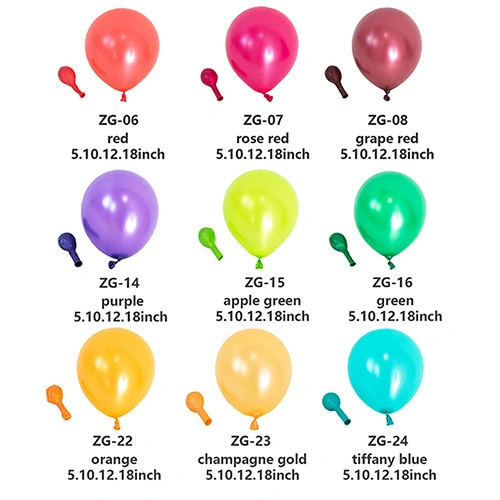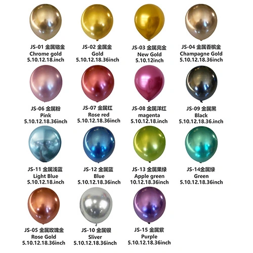 Belon logam:Dengan kemasan cermin berkilat tinggi dan tekstur serta warna yang menarik perhatian, ini adalah belon lateks yang paling serba boleh untuk digunakan dalam hiasan parti, cetakan tersuai dan banyak lagi.