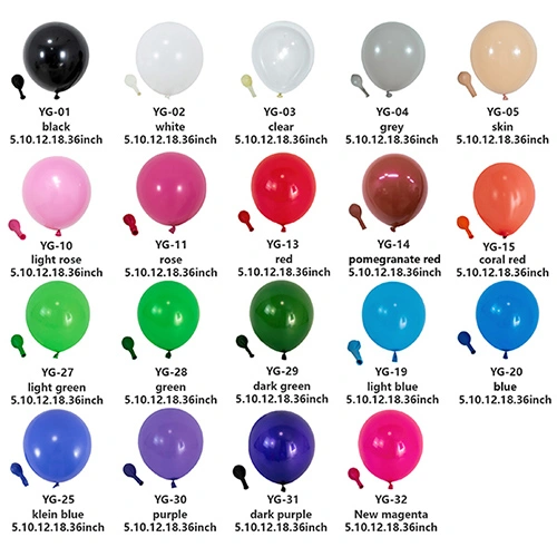 Belon lateks adalah barangan hiasan dan hiburan yang digunakan secara meluas. Belon ini sangat popular dalam pelbagai majlis kerana warna dan kaedah penggunaannya yang berbeza. Daripada merah matte, kuning, biru dan hijau kepada merah jambu dan ungu retro, dan kemudian kepada ton metalik seperti emas dan mawar, belon berkualiti tinggi boleh mencipta kesan visual yang mengejutkan dan memenuhi keperluan pelbagai senario.