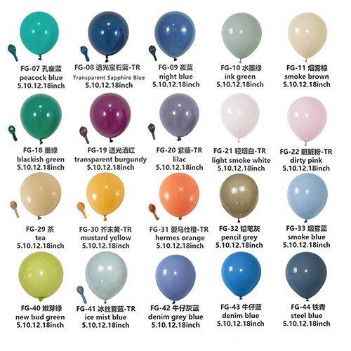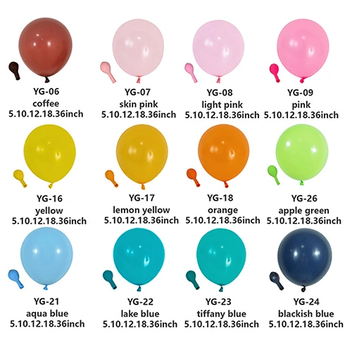 Belon lateks kami biasanya dihasilkan dalam 5 inci, 10 inci, 12 inci, 18 inci dan 36 inci. Jika anda mempunyai sebarang keperluan khas dan perlu menyesuaikan belon, kami juga boleh mengatur pengeluaran dalam saiz lain.