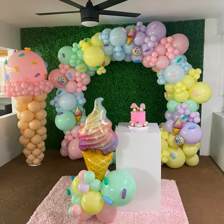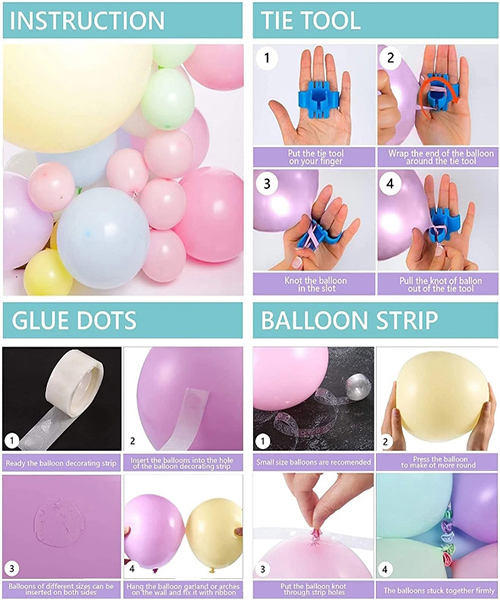 Macaroon Ice Cream Balloon Arch Garland Kit mengandungi belon lateks pelbagai warna dan saiz, serbuk maca, maca biru, maca kuning, maca hijau dan maca ungu, serta belon panjang pelbagai warna maca dan belon ais krim foil. Selepas belon ini dinaikkan, mereka dipasang melalui rantai belon, titik gam dan reben untuk melengkapkan balon ais krim macaroon yang indah. Balloon Balloon Arch Garland yang berwarna -warni boleh direka khas untuk pesta atau acara anda. Ia adalah pilihan yang sempurna untuk parti luar, parti sekolah, syarikat atau keluarga, perayaan tamat pengajian, hiasan percutian dan permainan luaran, terutamanya yang sesuai untuk hari lahir kanak -kanak, pesta bayi, wahyu jantina, unicorns, pelangi, ikan duyung, parti bertema ais krim perempuan, atau hiasan untuk majlis perkahwinan, pancuran mandian, parti -parti, parti -parti yang bertemakan. Buat tema balon pelangi untuk parti anda atau acara bertema.