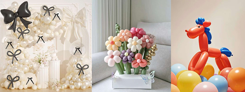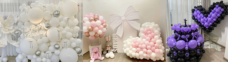Saiz yang berbeza boleh digunakan bersama. Belon kecil boleh digunakan sebagai butiran hiasan. Belon besar boleh digunakan untuk gerbang belon atau garland belon. Kesannya kelihatan menarik. Apabila digunakan dengan belon bobo, belon warna logam atau belon kerajang, rupa mempunyai lebih banyak lapisan. Gaya menjadi lebih kaya. Penggunaannya sangat luas. Ia boleh digunakan pada majlis perkahwinan. Ia boleh digunakan pada pesta ulang tahun. Ia juga boleh digunakan pada acara percutian. Ia berfungsi sebagai hiasan utama atau hiasan terperinci.