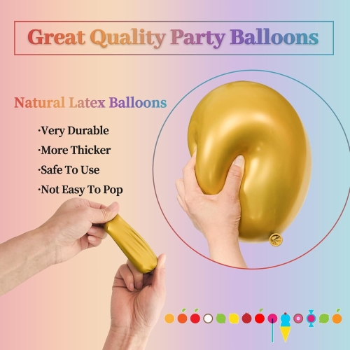 Anda boleh memilih satu warna metalik tunggal untuk pakej. Pilihan popular ialah emas champagne, hijau metalik, emas mawar dan sebagainya. Ia menjadikan pemandangan anda berasa ringkas dan disatukan. Ia membentang dengan sangat baik. Ia hampir tidak pernah muncul. Ia kekal penuh selama lebih 12 jam selepas inflasi. Anda juga boleh mencampurkan warna metalik yang berbeza. Cuba emas dan perak bersama-sama. Ini menghasilkan hiasan berlapis yang menarik perhatian. Gandingkan belon ini dengan belon lateks confetti juga. Kilauan licin belon metalik berbeza dengan tekstur konfeti yang berkilauan. Konfeti bergerak di dalam apabila anda menggoncangnya. Ini menambah keseronokan dan pergerakan ke mana-mana ruang. Set kecil belon warna metalik berfungsi untuk parti hari jadi, perkahwinan, acara percutian dan paparan tingkap kedai. Setiap set melepasi ujian kedap udara dan keselamatan yang ketat. Ia memenuhi piawaian antarabangsa seperti EN71 dan CE. Melambung mereka adalah mudah. Malah orang baru DIY boleh menggunakannya. Mereka juga disukai oleh perancang acara profesional. Anda akan mencipta ruang dengan suasana yang menakjubkan.