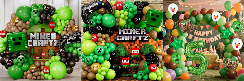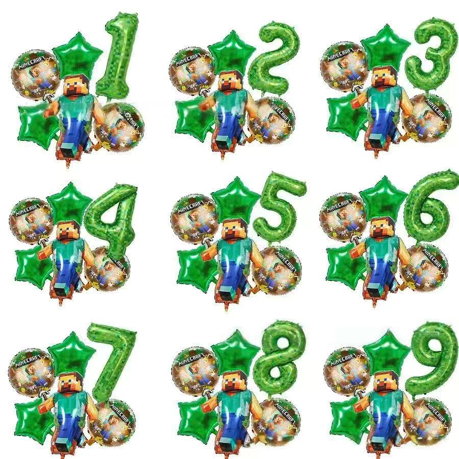 Minecraft Number foil belon diilhamkan oleh corak piksel rumput dan lapisan kotoran dalam permainan. Mereka datang dalam bentuk nombor hijau, meliputi 1 hingga 9. Tekstur piksel pada nombor menyalin gaya permainan. Sepasang mereka dengan blok rumput yang sepadan dan belon bintang. Paparan umur juga mempunyai rupa minecraft. Mereka adalah kemuncak yang menyeronokkan untuk pesta ulang tahun.