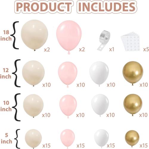 Kit gerbang belon putih Pink Beige jenama NiuN menggunakan belon lateks kualiti yang jauh lebih tinggi daripada belon yang setara dengannya.