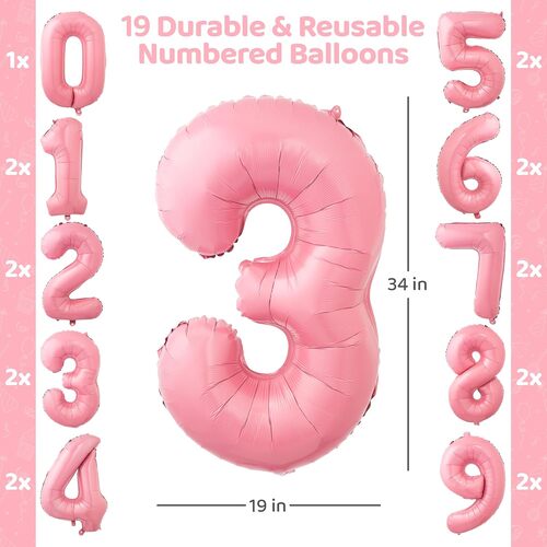 Set belon selamat hari jadi merah jambu terutamanya terdiri daripada belon lateks berkualiti tinggi dan belon foil yang berbeza. Sebagai simbol tema hari jadi, belon nombor 34 inci adalah komponen yang paling penting. Belon foil surat dengan mesej "Selamat Hari Lahir" juga sangat menarik. Selain itu, belon kerajang lain yang digayakan seperti belon kerajang gincu, belon kerajang botol dan sebagainya boleh menambahkan lagi suasana pada pakej ini.