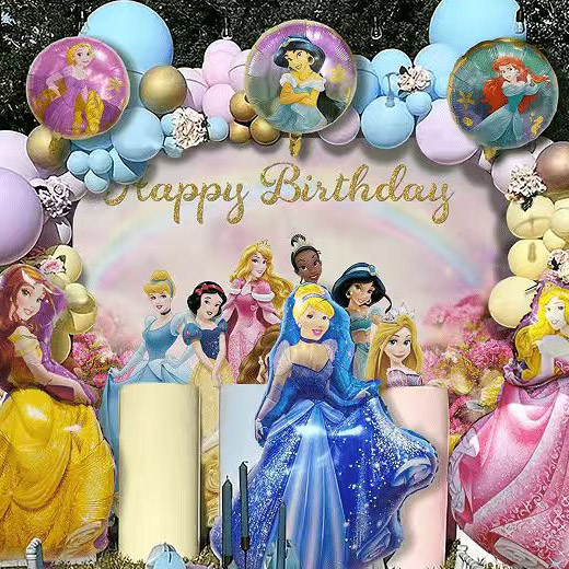 Princess Party Balloon Set Penyesuaian Perkhidmatan: Penyesuaian Tema Sokongan, boleh mencetak nama bayi, tarikh ulang tahun, "puteri gembira" dan berkat lain, atau menyesuaikan pencocokan warna, untuk membuat upacara dongeng eksklusif.