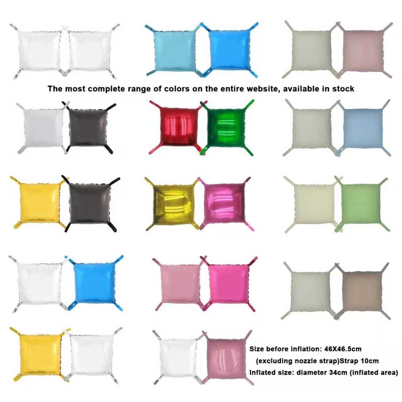 Saiz deflasi: 47*47cm tanpa reben, saiz deflasi: 55*55 dengan reben, saiz inflasi: 34*34cm |