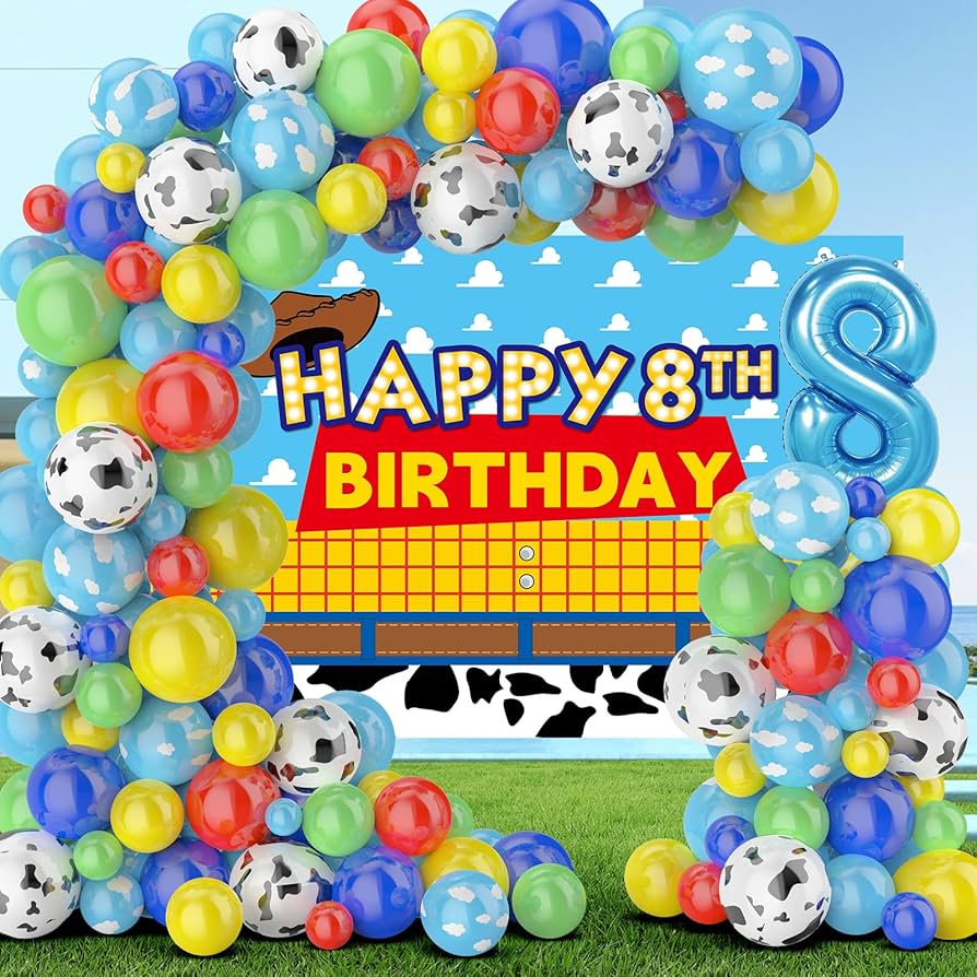Kalungan belon Toy Storyialah sejenis hiasan belon bertemakan filem animasi Disney Pixar, yang biasanya digunakan untuk majlis hari jadi, aktiviti bertemakan filem dan lain-lain majlis. Ia terdiri daripada belon dalam pelbagai warna dan corak, menggemakan watak dan elemen dalam filem, seperti Woody, Buff Lightyear, dll. Ia terutamanya termasukbelon lateksdanbelon foilsebagai perlawanan. Sesetengah produk akan dipadankan dengan sepanduk kertas, alas meja, kain latar dan produk lain mengikut persekitaran penggunaan pelanggan. Warna belon lateks biasanya merah, kuning, biru dan sebagainya. Untuk meningkatkan lapisan sut, kami juga akan menggunakan belon labuci dan belon foil sebagai sentuhan penamat.