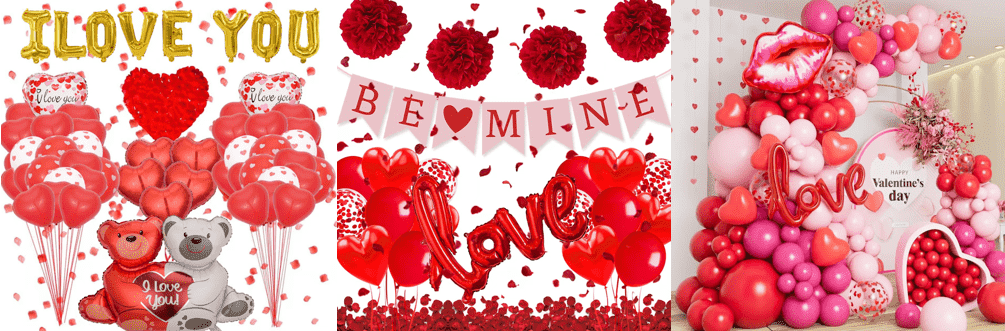 Terutamanya dengan merah jambu, merah dan putih sebagai sistem warna utama, belon lateks dihubungkan bersama melalui aksesori belon untuk membuat gaya garland belon, sepadan dan watak-watak gaya lain, belon foil kecil sebagai perhiasan, belon foil besar-besaran sebagai sentuhan penamat, sama ada tidak berkumpul dengan untuk menghabiskan masa kolokasi tetapi meneruskan tekstur romantis.