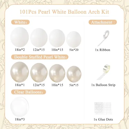 Terdapat titik belon, jalur belon, reben, ikatan belon di setiap gerbang belon perkahwinan putih. Semuanya dipadankan dengan teliti untuk mencipta kesan hiasan perkahwinan yang cantik dan padu.